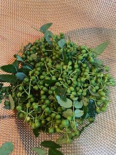 ●これは山荘の庭に自生の山椒。貴重。まろ夫妻お持ち帰り。